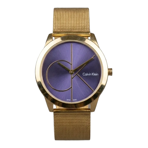 كالفن كلاين ساعة رجالية – ذهبي / كحلي / سوار شبكي معدني (تصميم بسيط)