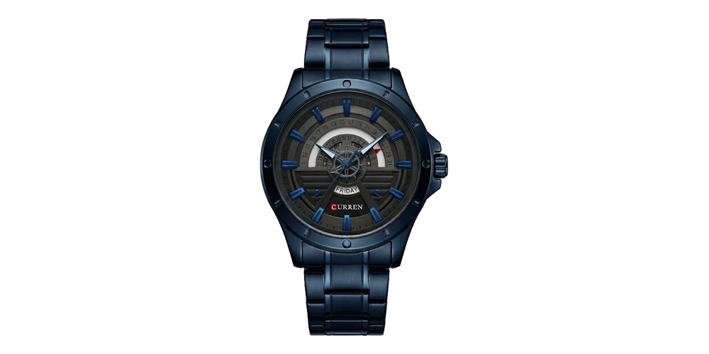 كورين ساعة رجالية – أزرق غامق / رمادي غامق / سوار معدني (عرض اليوم)