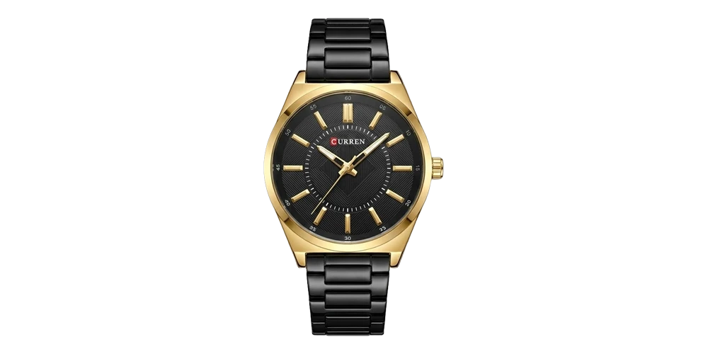 كورين ساعة رجالية – ذهبي / أسود / سوار معدني (تصميم بسيط)