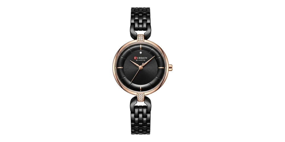 كورين ساعة نسائية – روز غولد / أسود / سوار معدني (ميني)