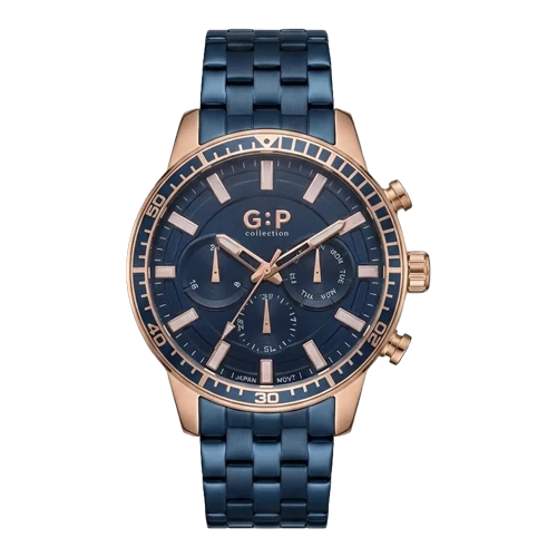 جي : بي ساعة رجالية – روز جولد / كحلي / سوار معدني (كرونوغراف)