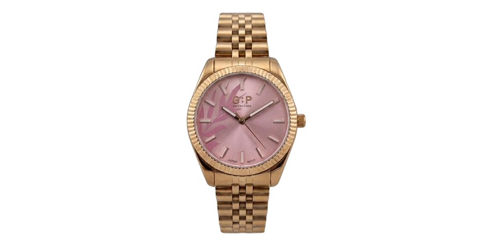 جي : بي ساعة نسائية – روز غولد / وردي / سوار معدني (قرص ناعم)