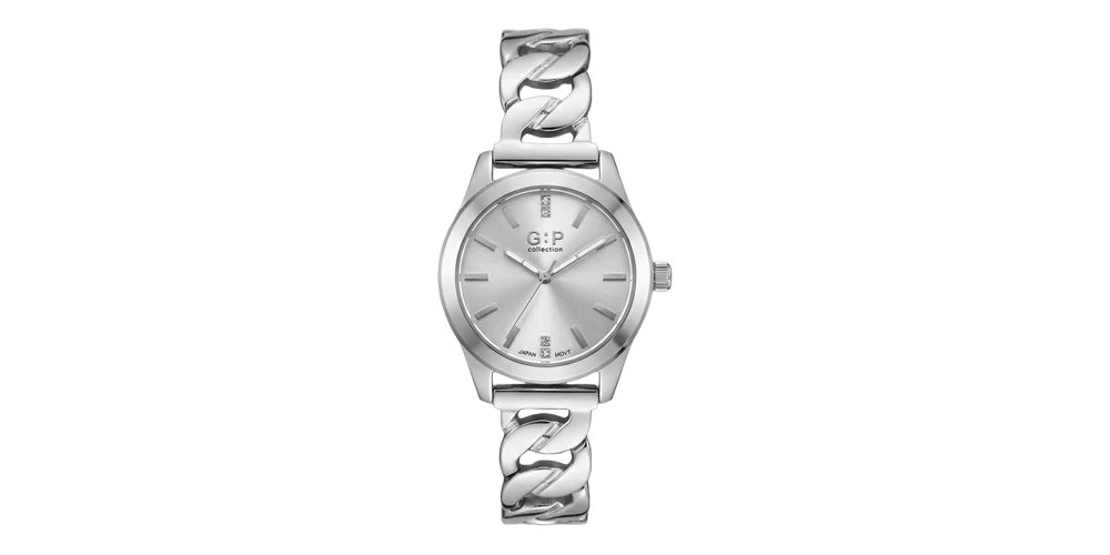 جي : بي ساعة نسائية – فضي / رمادي فاتح / سوار معدني بسلسلة (ميني)