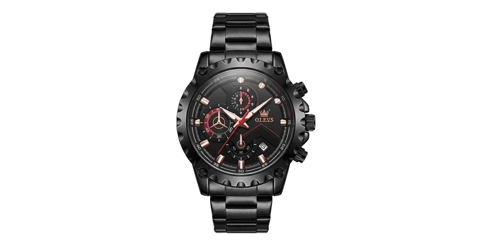 أوليفس ساعة رجالية – أسود / روز غولد / سوار معدني (كرونوغراف)