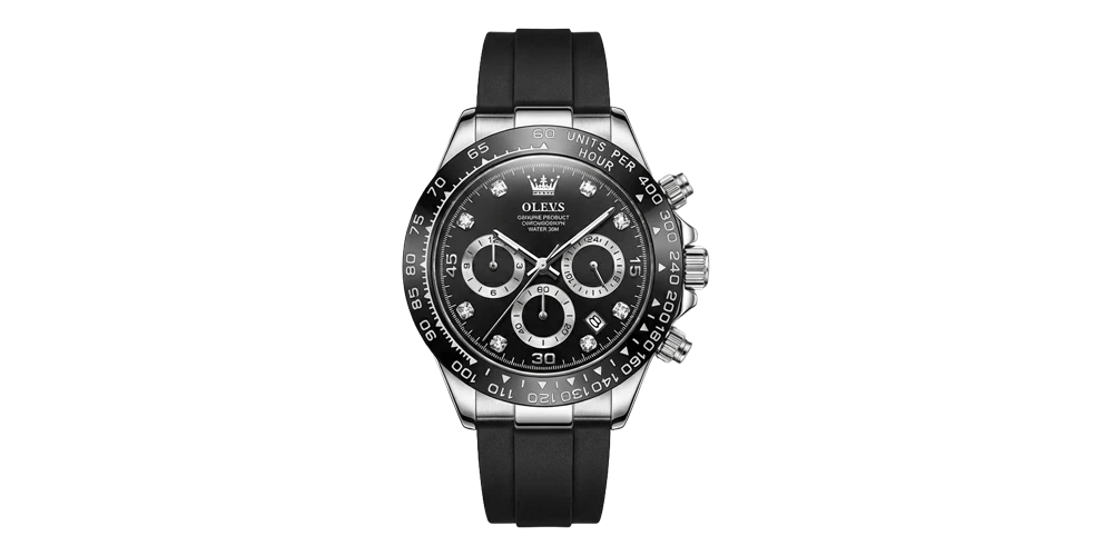 أوليفس ساعة رجالية – أسود / فضي / سوار مطاطي (كرونوغراف رياضي)