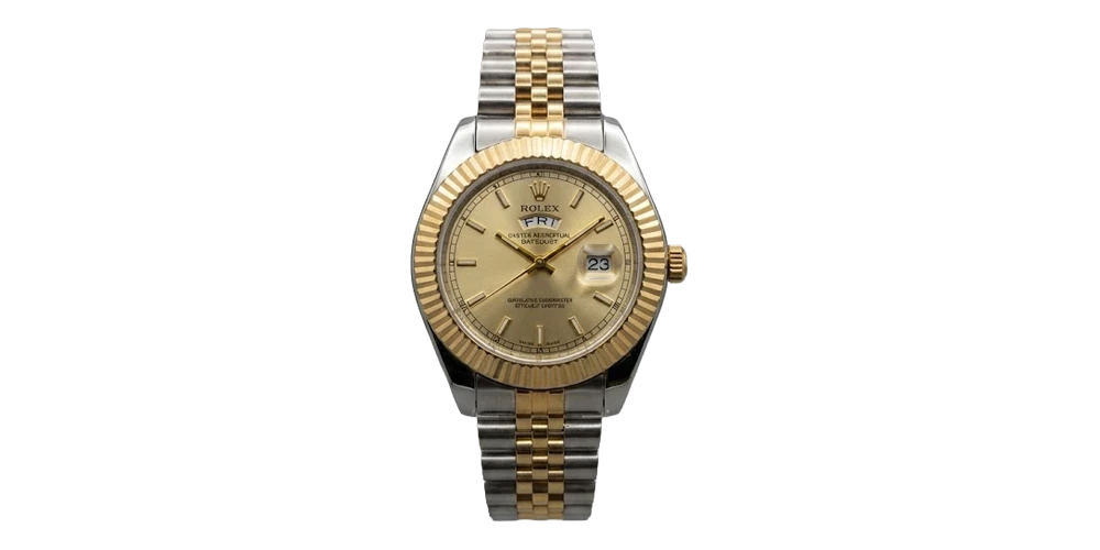 ساعة رولكس للرجال بسوار معدني ثنائي اللون ومينا شامبانيا وإطار مسنن ذهبي