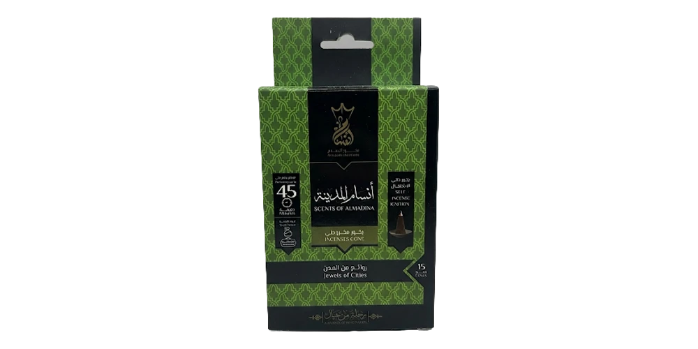 بخور مخروطي ذاتي الاشتعال أنسام المدينة من بخور أنسام ١٥ قمع ٤٥ دقيقة مع حامل مخصص