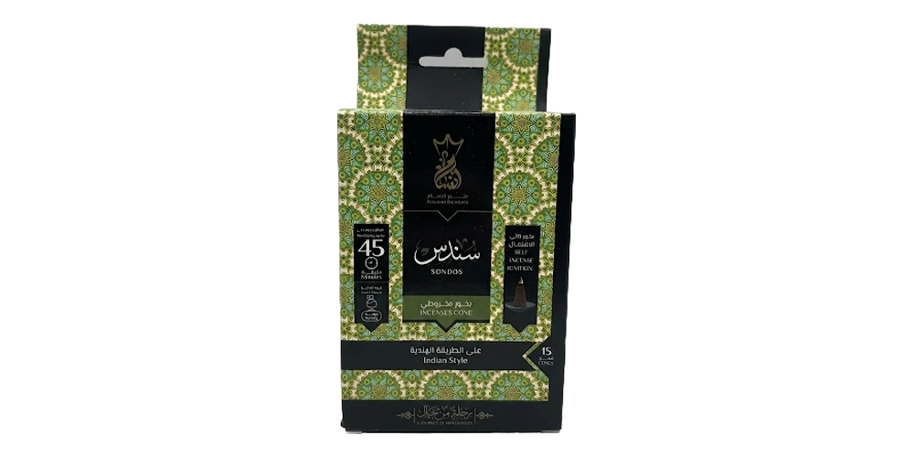 بخور مخروطي ذاتي الاشتعال سندس من بخور أنسام ١٥ قمع ٤٥ دقيقة مع حامل مخصص