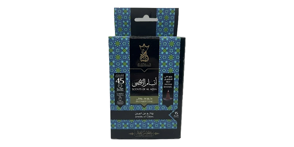 بخور مخروطي ذاتي الاشتعال أنسام الأقصى من بخور أنسام ١٥ قمع ٤٥ دقيقة مع حامل مخصص